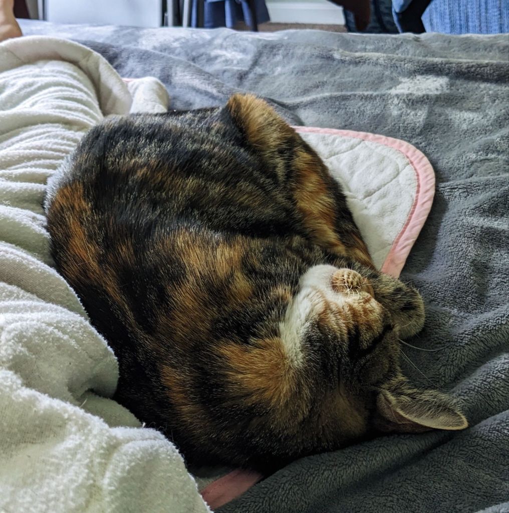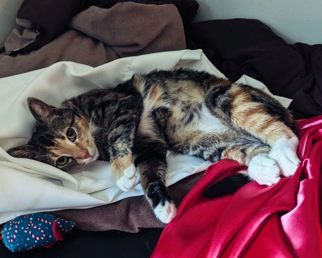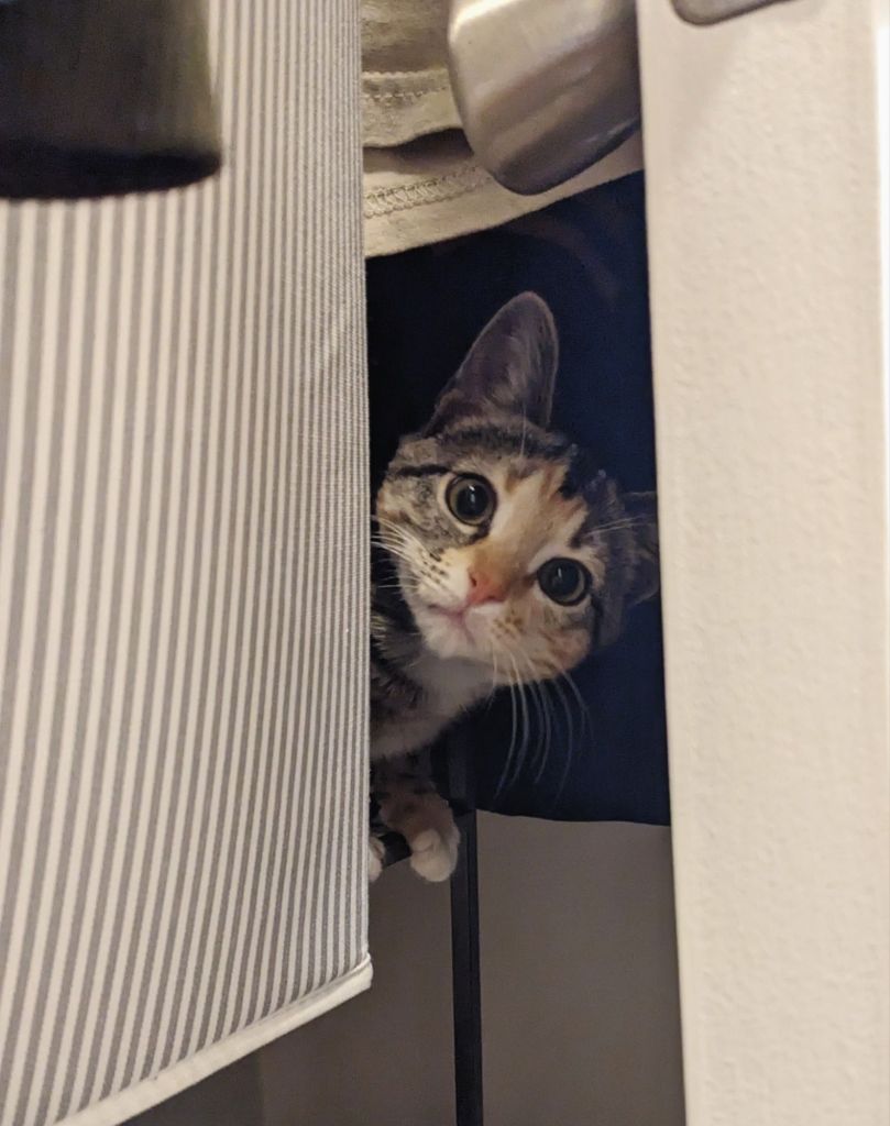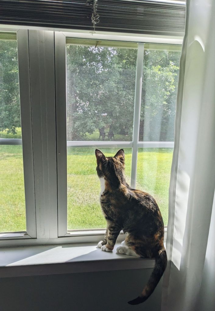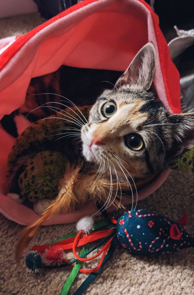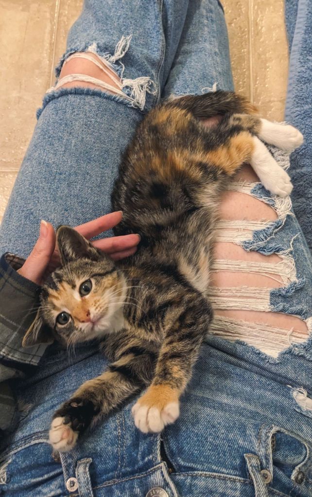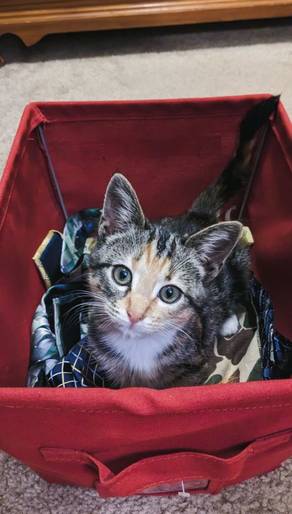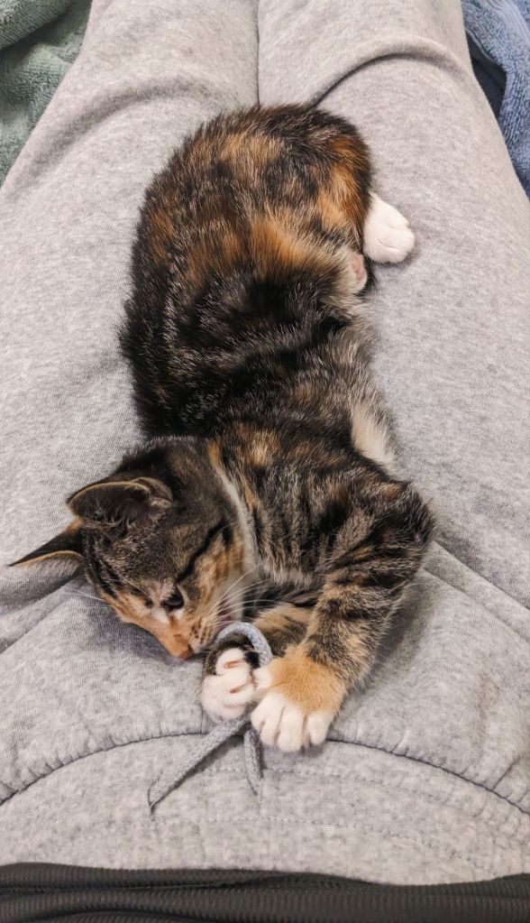 One of the first pictures I took of her. 🩷Those first few weeks, we always had to be sitting on the floor for her to come say hey to us. 🩷 – But she was a brave little baby, and so she’d venture over & climb in our laps. 🩷No drawstring is safe! 😂 (Also, look how tiny she was! 😍)Cat in a basket… Need I say more? 😉Also a cat in a basket… doing abnoxious little cat things. 😂I was reading a book, I looked up… and this is what I saw. 🩷 – Also, if you want to be stared at all the time in your own home, get you a cat! 😂Cami thinkin’ she’s some kind of parrot. 😂She loves her tunnels! 🩷And she loves her toys! 💙Okay, come on, that’s just adorable! 🥰She’s a model, obviously. Cat naps! 🩷🩷🩷“Hey guys!” 🩷Somebody get this cat a modeling contract already. 😉Post-spay nap! 🩷 (After she came home from the vet & immediately got the zoomies, acting like she didn’t just have a whole surgery! 😳)Writing buddy! 🩷More naps! 🩷“Hey Mom! Whatcha doin?!”🩷🩷🩷Cliche cat in the sunny window! ☀️😉Cami cuddles! 🩷 — (Ignore all my gray hair! 😂 I’m only in my early thirties, I can’t help my mom’s side of the family grays super early, and that she had the audacity to pass those genes down to me! 🤷🏻♀️😂)